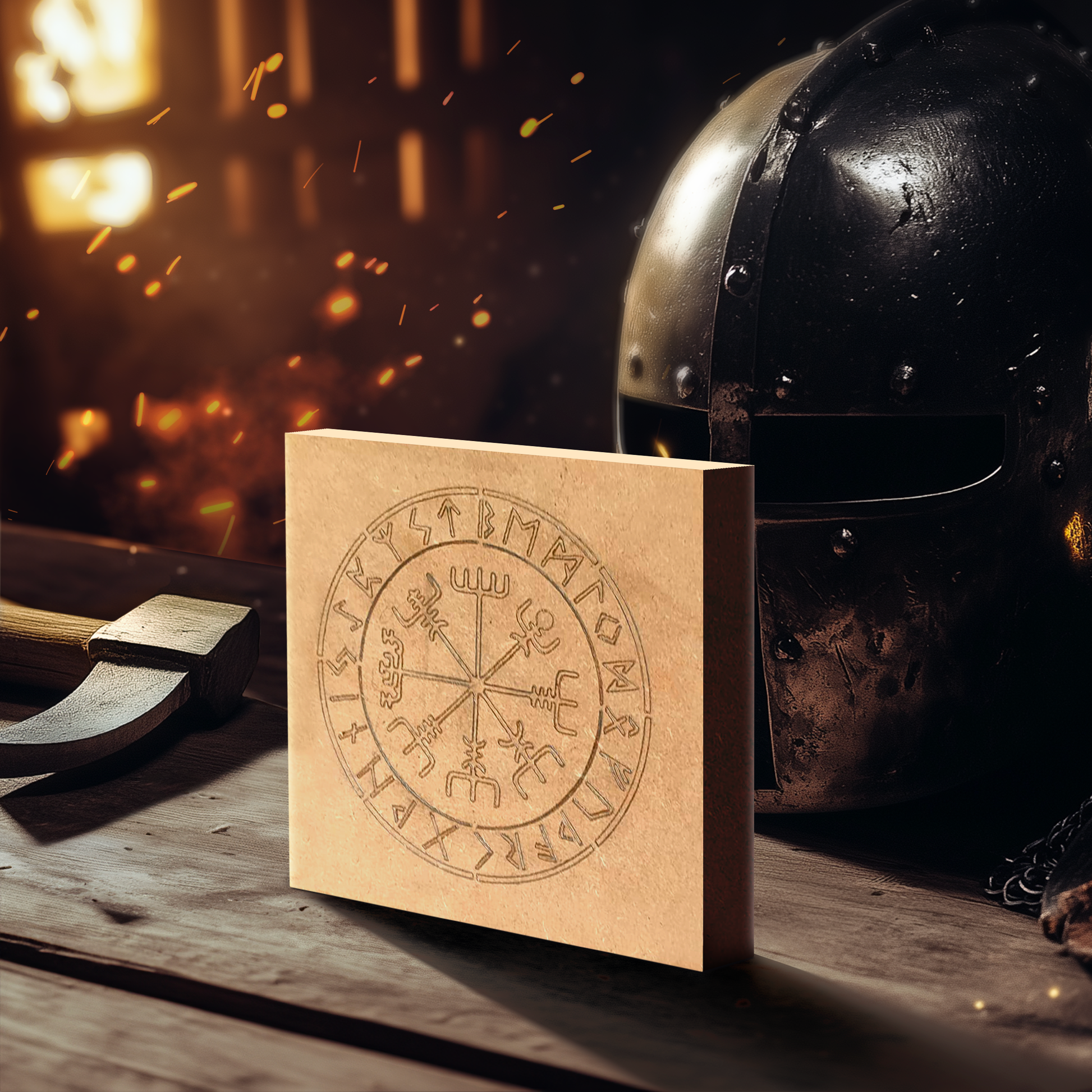 Décoration en bois pyrogravé symbole Vegvisir.